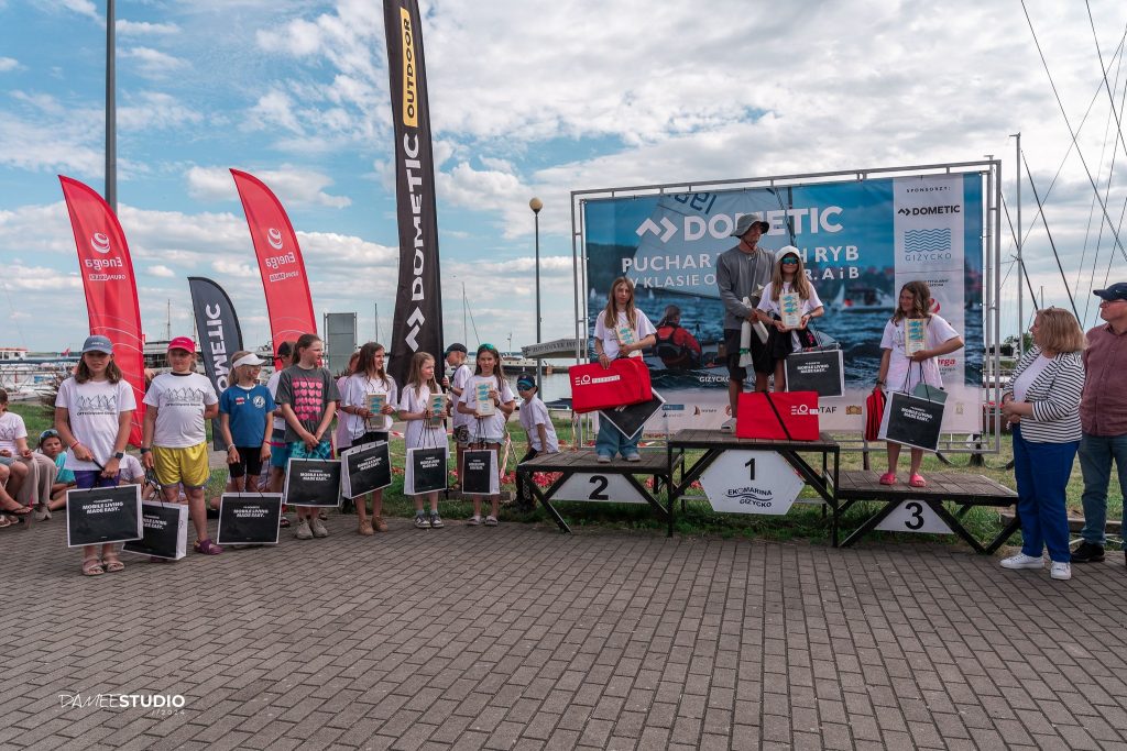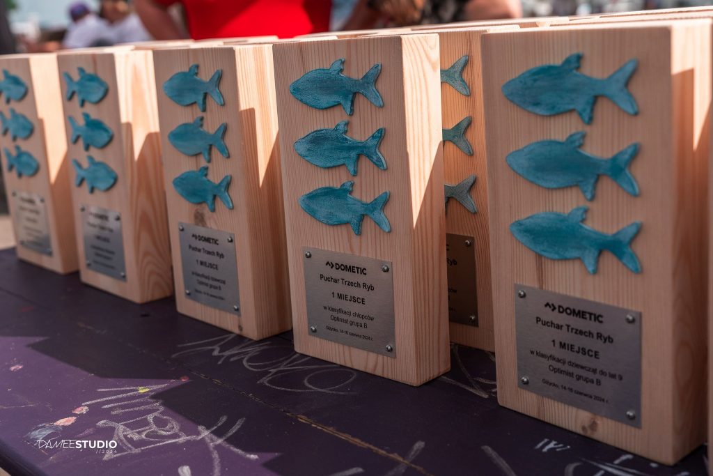 Do Giżycka (Energa Giżycka Grupa Regatowa), na DOMETIC Puchar Trzech Ryb, w dniach 14-16.06.2024 zjechało prawie 400 młodych żeglarzy w klasie Optimist. To jedna z największych imprez żeglarskich w Polsce. Po pierwszym bezwietrznym dniu, w kolejnych rozegrano łącznie 5 wyścigów. Nasz Klub w klasie Optimist B reprezentowała 7 zawodników. Czwórka z nich wystąpiła w finałowym wyścigu i najlepiej poradzili sobie najmłodsi
